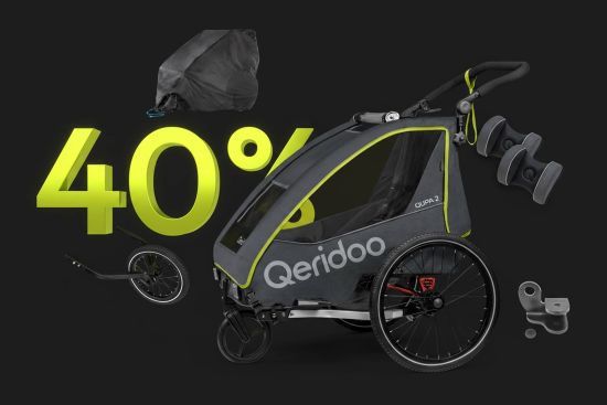 Jetzt unsere attraktiven Qeridoo Fahrradanhänger Bundles mit hochwertigem Zubehör sichern – nur für kurze Zeit und solange der Vorrat reicht.