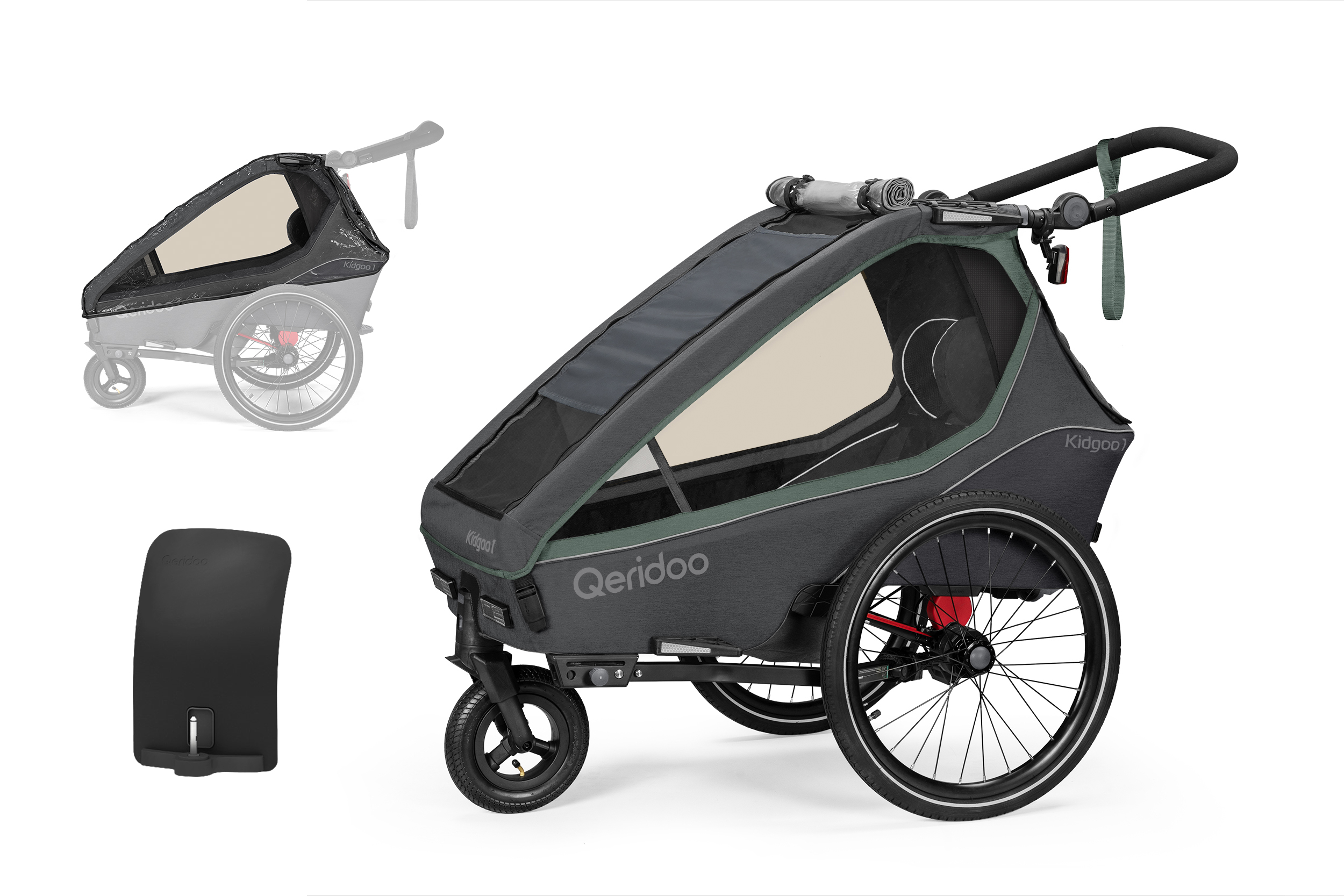 Mit Zubehör wie Kopfstütze, Qeridoo Schloss und Radabweiser mit Buggyradhalter – für noch mehr Flexibilität im Alltag.