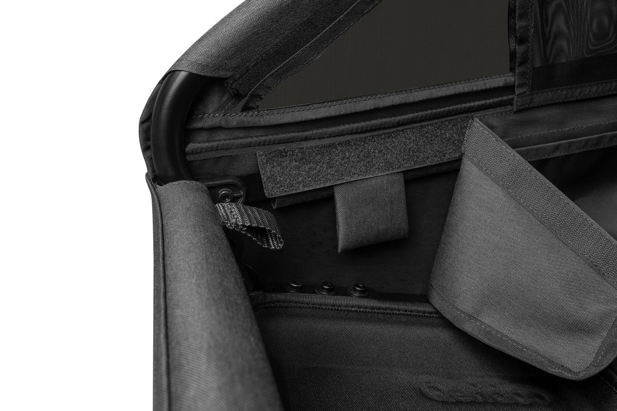 Der abnehmbare, seitliche Sonnenschutz mit Klett (in der Kabine) sorgt für optimales Klima. Neben dem integrierten Verstaufach für das Verdeck sorgt ein zusätzliches Sichtfenster für angenehme Belüftung und ermöglicht Dir gleichzeitig jederzeit den Blick zu Deinem Kind.