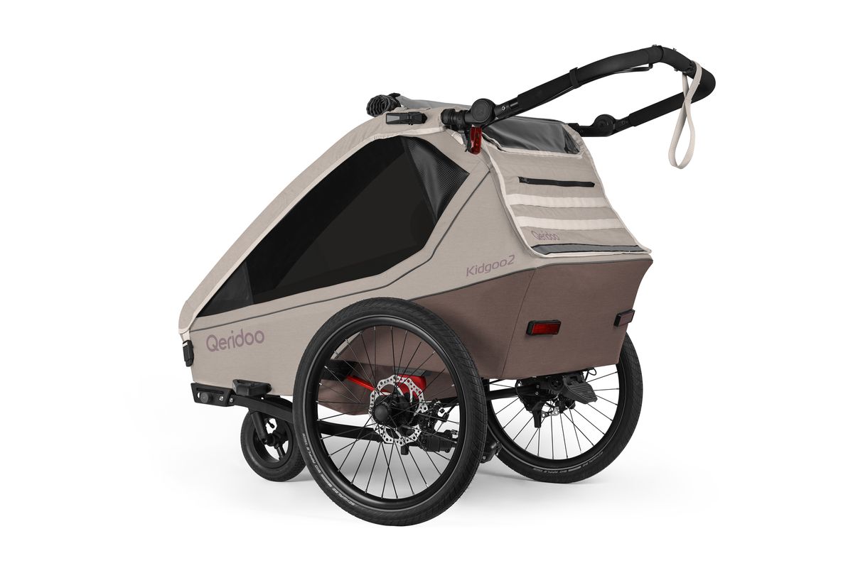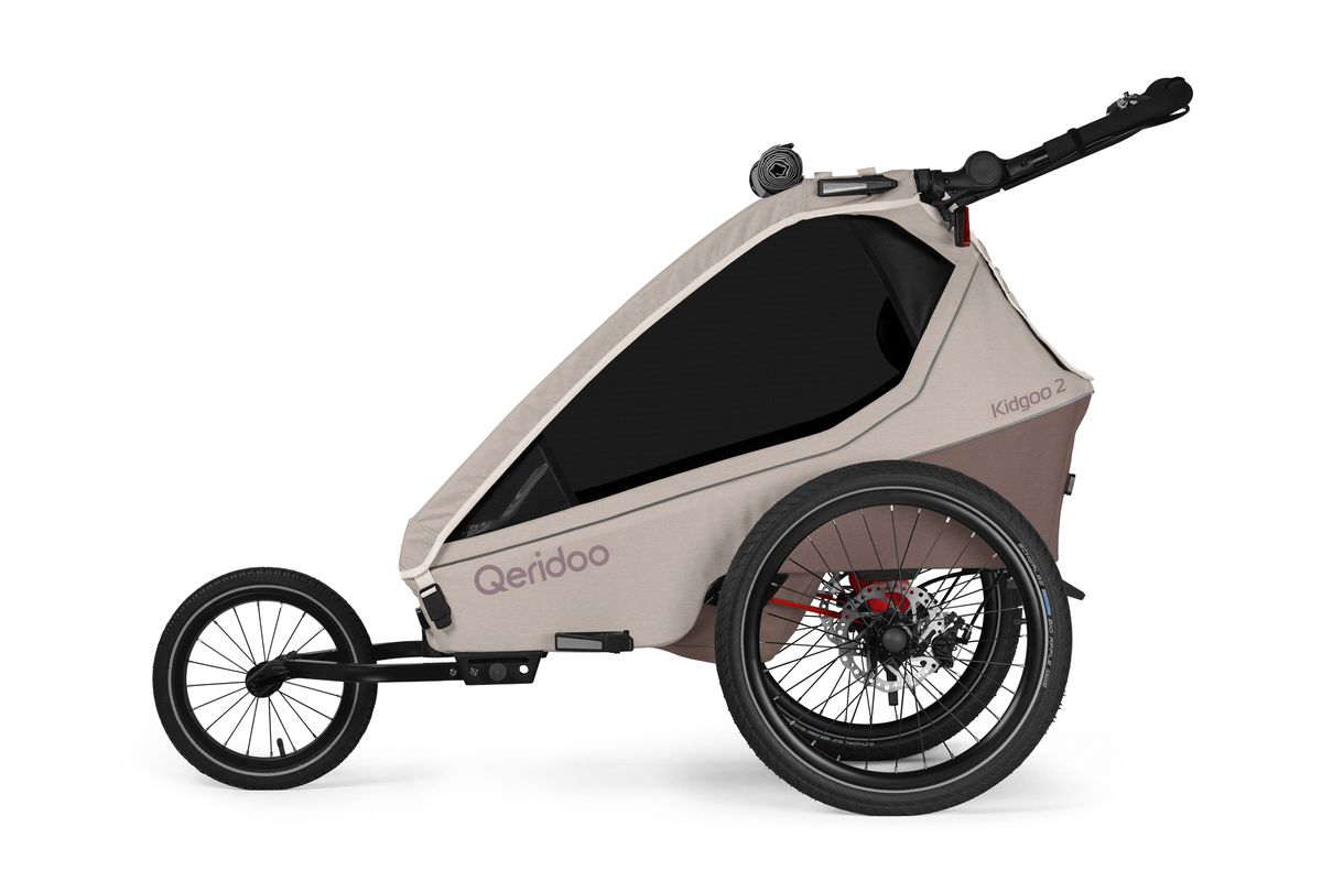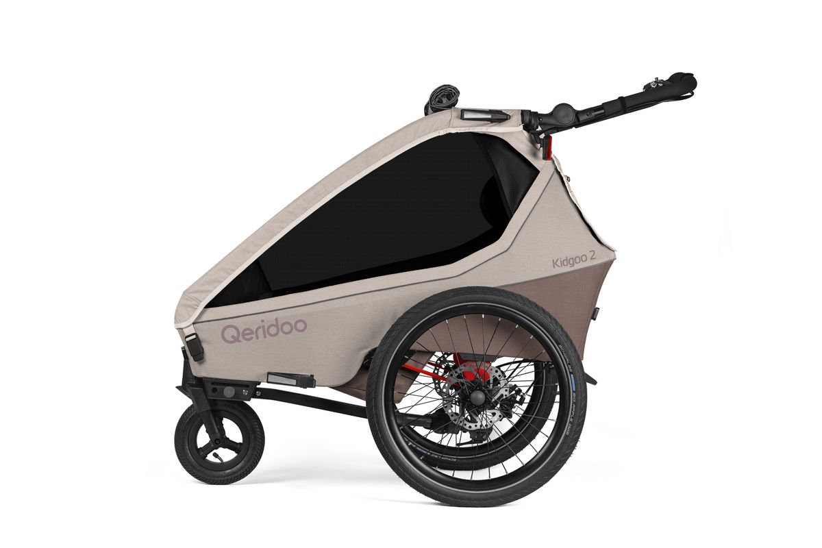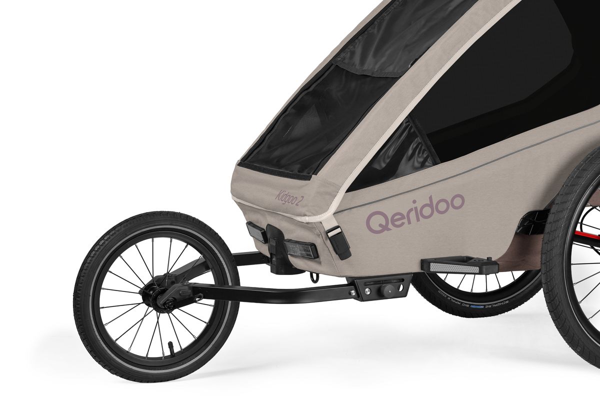 Der Qeridoo ist als Fahrradanhänger konzipiert und mit einem zusätzlichen Buggy- und Walker-Modus ausgestattet.