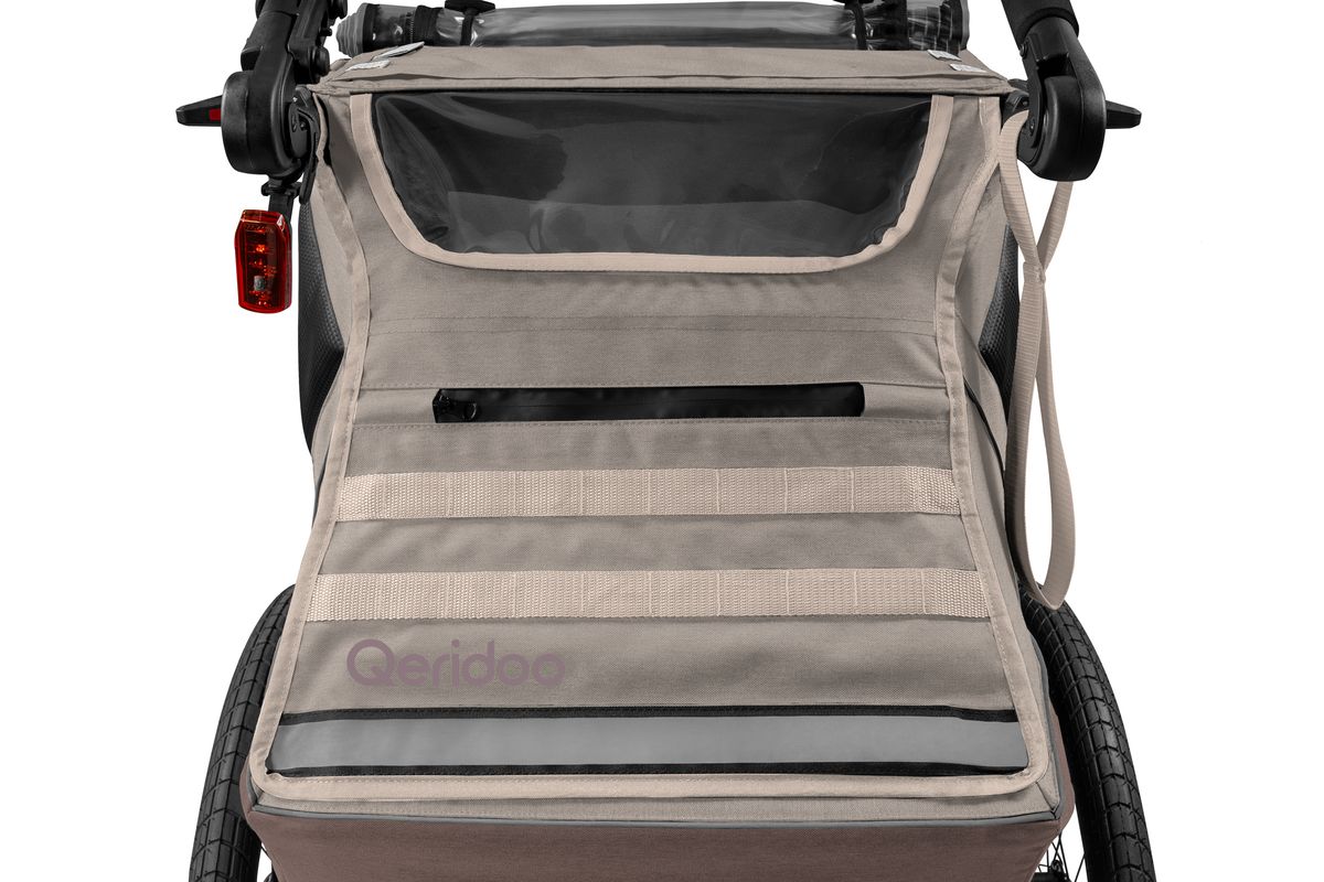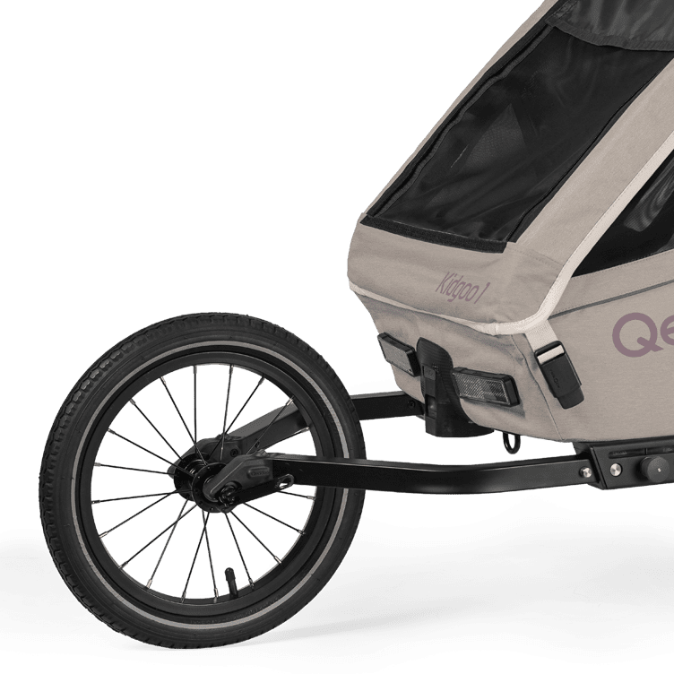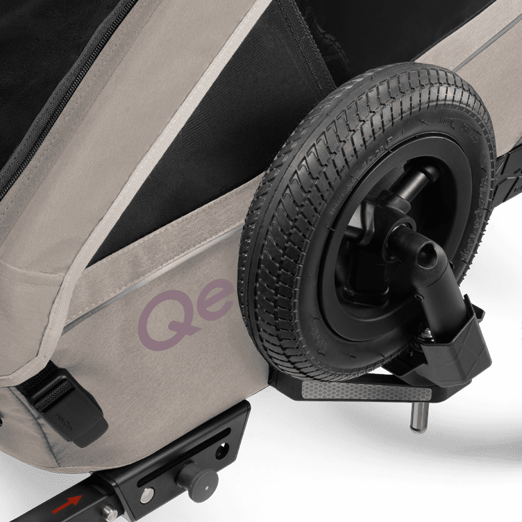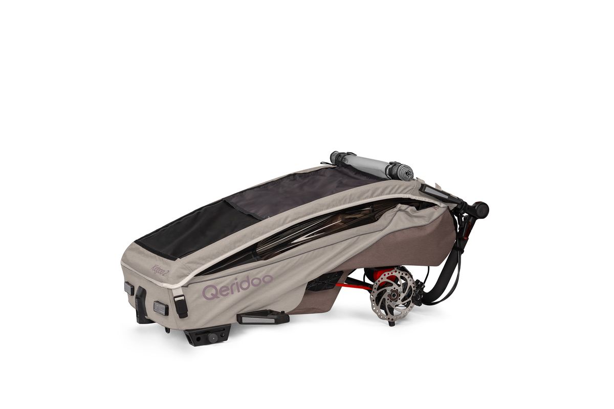 Der Qeridoo ist als Fahrradanhänger konzipiert und mit einem zusätzlichen Buggy- und Walker-Modus ausgestattet.