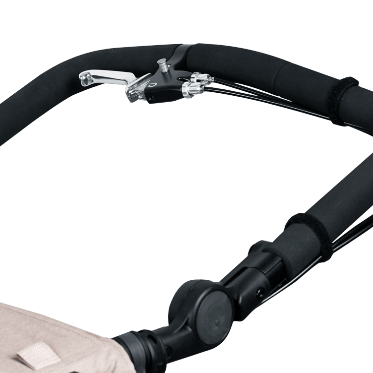 - Vergewissere Dich vor jedem Gebrauch, dass alle Verriegelungen eingerastet sind. Wickel zudem das Sicherungsband der Deichsel so um die Deichsel, dass es in der Bereitschaftsposition nicht herunterhängt und an Hindernissen nicht hängenbleiben oder schleifen kann.
