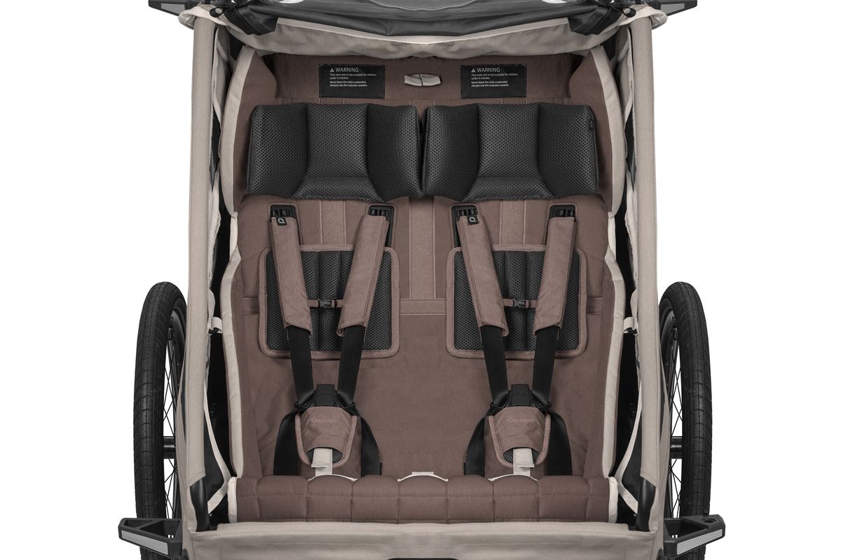 - Es ist nur ein Kind im Kidgoo 1 Pro (Einsitzer) und maximal zwei Kinder im Kidgoo 2 Pro (Zweisitzer) zu transportieren. Diese sind mittels Gurtsystem gesichert und tragen geeignete Kleidung, sowie einen Fahrradhelm. Es ist für eine ausgeglichene Lastverteilung zu sorgen.
