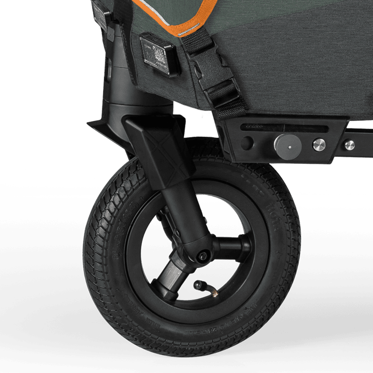 Das 360° luftgefüllte Buggyrad sorgt für einen ruhigen Lauf und eine gute Wendigkeit. Stellst Du das Rad mit dem Betriebsartenschalter fest, ermöglicht der Geradeauslauf unbeschwertes Walken in leichtem Gelände.