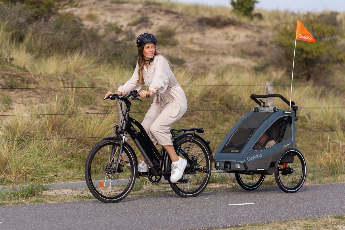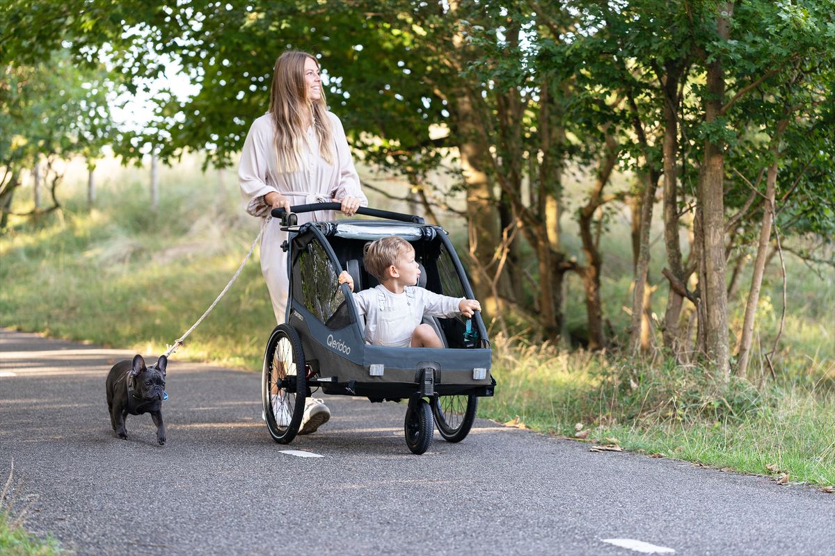 » Kabine mit Verdeck & Sonnenschutz, sowie Achse mit Bremszug & wieder verwendbarem Klettband » Kopfstütze » Schiebegriff mit Handschlaufe » 20″ Laufrad » Buggyrad » Radabweiser » Kopfprotektor » Radabweiser (2x) » Kopfprotektoren (2x) » Deichsel mit Kupplung & Reduzierstück M5 » Wimpel » LED-Rücklicht (exkl. Batterien) » Hülsenschraube » Innensechskantschlüssel (2x) » Benutzerhandbuch mit Garantiekarte » Achs-Finder