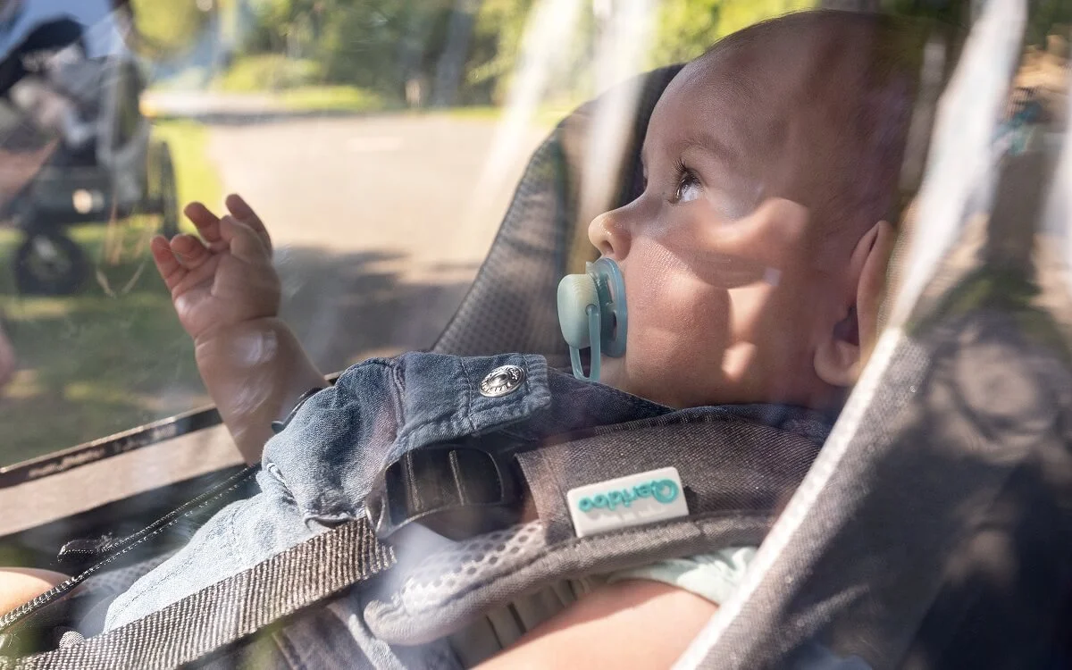 Unsere innovativen und patentierten Kopfprotektoren bieten optimalen Schutz, indem sie im Falle eines Umkippens für einen lebenswichtigen Sicherheitsabstand zwischen dem Kopf Deines Kindes und dem Boden sorgen. Zudem dient der Schiebebügel dient als Überrollschutz.
