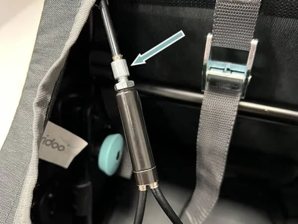 Lege den Qeridoo vorsichtig auf das Dach, um die Scheibenbremse bequem einzustellen.