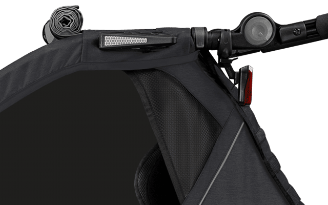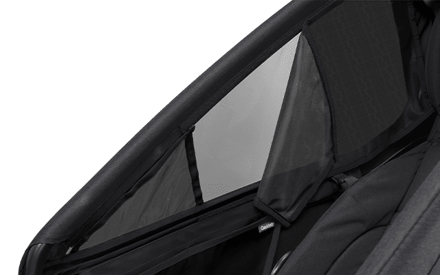 Das Verdeck kombiniert Insekten-, Sonnen- und Spritzwasserschutz in einem System. Wasserabweisend, schadstoffgeprüft und mit UV-Schutz 50+ ausgestattet, damit Dein Kind bei jedem Wetter bestens geschützt ist.