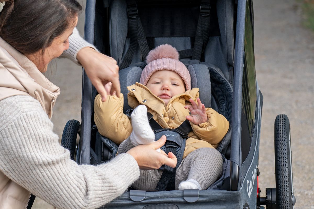 Die ersten Sonnenstrahlen kitzeln vielleicht das Näschen, Laub raschelt, Blumen blühen und wollen entdeckt werden … Bereits im Babyalter machen Ausflüge unglaublich viel Spaß! Du zeigst Deinem Baby die Welt – Qeridoo sorgt für den sicheren Transport. Die Hängematte Plus für Fahrradanhänger bietet dazu mit ihrem Sicherheitsrahmen aus Aluminium im Gegensatz zu herkömmlichen Hängematten einen stabilen Seitenschutz aus festem, gepolstertem Material. Für eine besonders rückenschonende Haltung und einen nahezu schwebenden Transport sorgen die ergonomische Konstruktion und die komfortable Liegefläche mit atmungsaktiver Rückenlehne. Kein Wunder, dass Dein Baby perfekt darin schlummern kann, wenn ihr gemeinsam unterwegs seid! Ein 5-Punkt-Sicherheitsgurt mit Smart-Lock-Funktion schützt Dein Kind zu jeder Zeit, sodass jede Fahrt nicht nur unglaublich bequem, sondern auch unglaublich sicher ist.