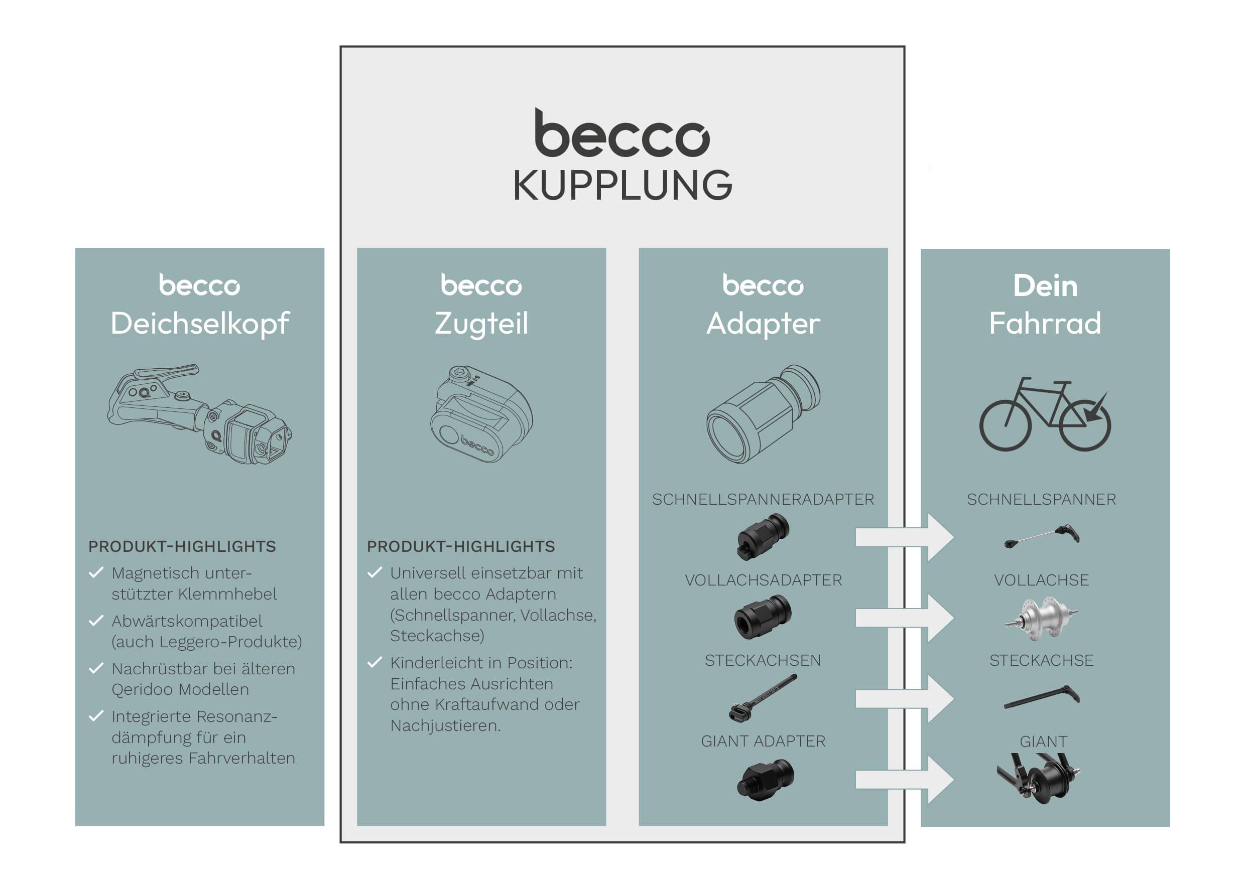 Ab Modelljahr 2025 setzen ausgewählte neue Qeridoo Modelle auf das neue becco-Kupplungssystem.
