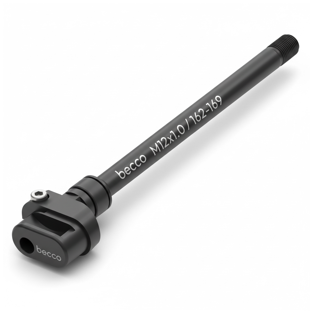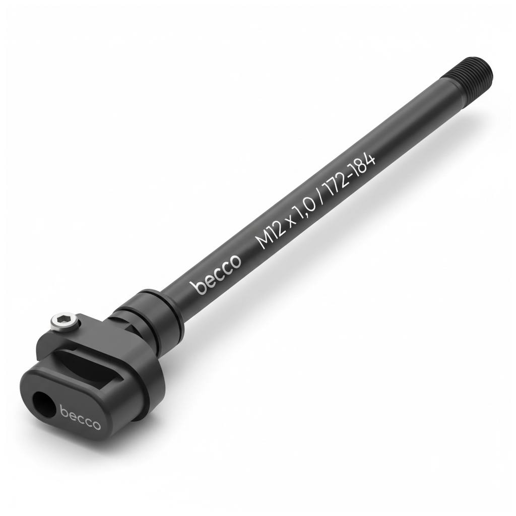 Wichtig: Messe vor dem Kauf die Länge Deiner originalen Steckachse und prüfe die Gewindesteigung. Die becco Steckachse ist in verschiedenen Längen und Gewindesteigungen erhältlich, um nahezu alle gängigen 12 mm Standards abzudecken.